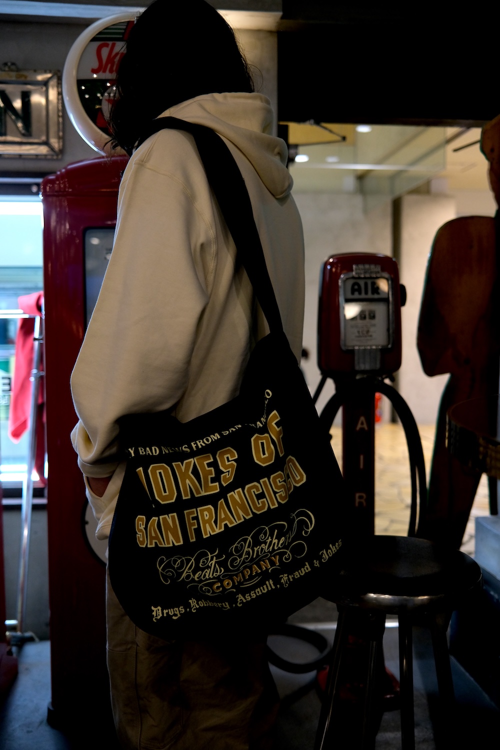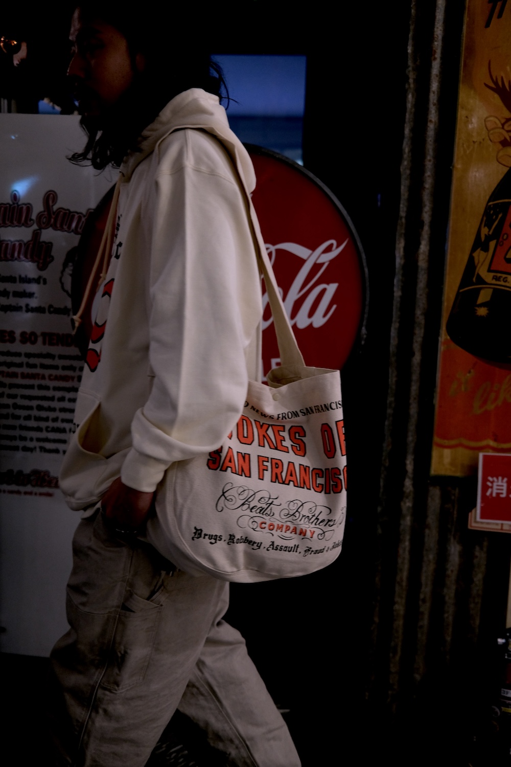 古き良きアメリカンワークウェアをベースに、ビンテージサイン(看板)や、アンティーク雑貨を背景とし、ダンディーかつセクシーな遊び心ある他にはないウェアを展開。